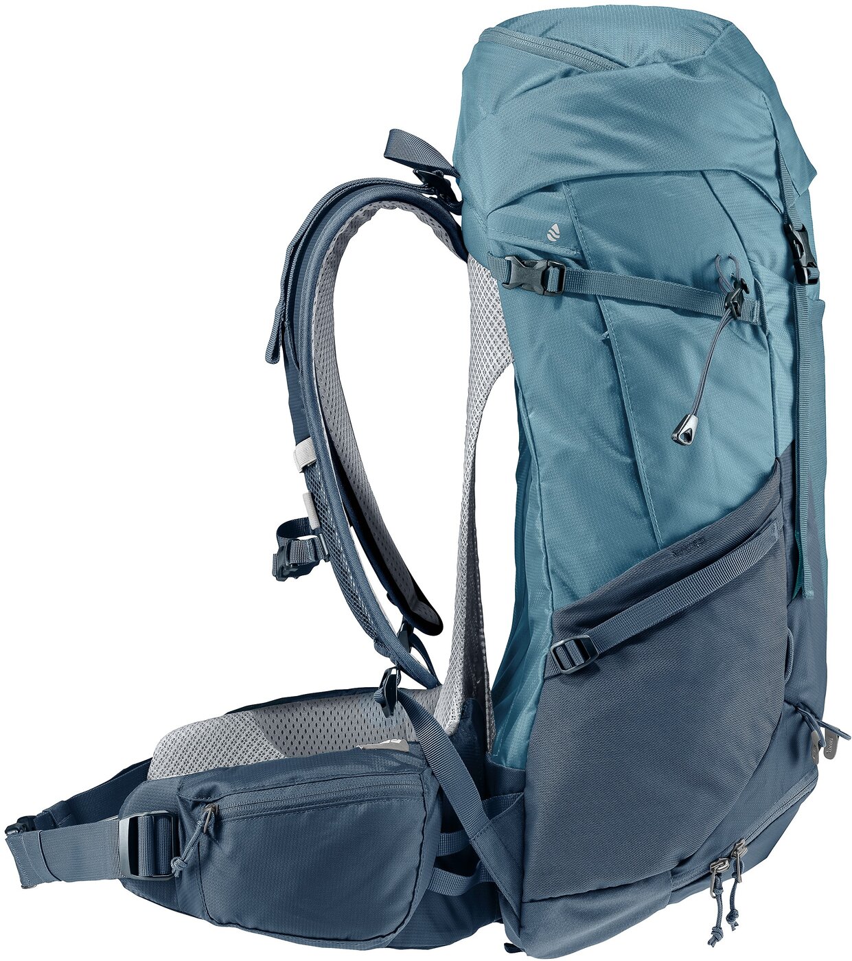 Der bis ins Detail durchdachte Futura Pro wurde für Mehrtagestouren entwickelt, bei denen es an Komfort nicht mangeln darf. Daher besitzt der Wanderrucksack das ergonomische Aircomfort Sensic Pro Netzrücken System. Dieses sorgt aufgrund des neuartigen Mesh für maximale Rückenbelüftung. Zudem ermöglichen die beweglichen VariFlex ECL Hüftflossen mit ergonomischen Polstereinsätzen ein energiesparendes Tragen. Dank der klaren Fächeraufteilung lässt sich das Gepäck im Deckelfach, in seitlichen Balgtaschen, im separaten Bodenfach sowie im geräumigen Hauptfach sinnvoll und leicht verstauen. Material: 210D Polyamid Recycledycled, 600D Polyester