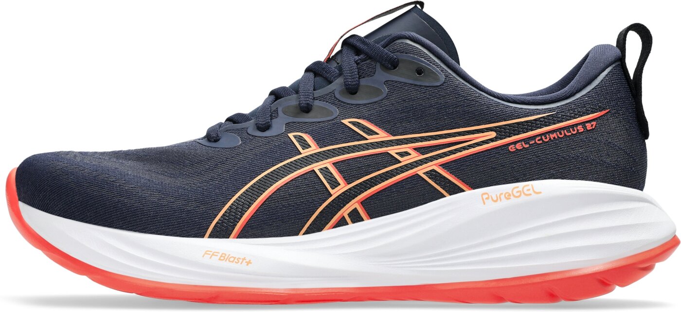 He.-Running-Schuh GEL-CUMULUS 27 Ein neutraler, gedämpfter Alltagstrainer für verschiedene Distanzen. -FF BLAST PLUS TechnologieDämpfung sorgt für leichte Stoßabsorption und reaktiven Rebound – PureGEL TechnologieFür leichte Dämpfung und softere Landungen – Speziell entwickeltes Jacquard-Mesh-ObermaterialFür mehr Atmungsaktivität und Tragekomfort -Die Einlegesohle wird mit einem Lösungsfärbeverfahren hergestellt, das den Wasserverbrauch im Vergleich zur herkömmlichen Färbetechnologie um ca. 33 % und den CO2-Ausstoß um ca. 45 % reduziert – Reflektierende DetailsFür mehr Sichtbarkeit bei schlechten Lichtverhältnissen – Mindestens 75 % des Obermaterials besteht aus recycelten Materialien, um Abfall und CO2-Ausstoß zu reduzieren – OrthoLite X-30 EinlegesohleBietet optimalen Komfort beim Laufen