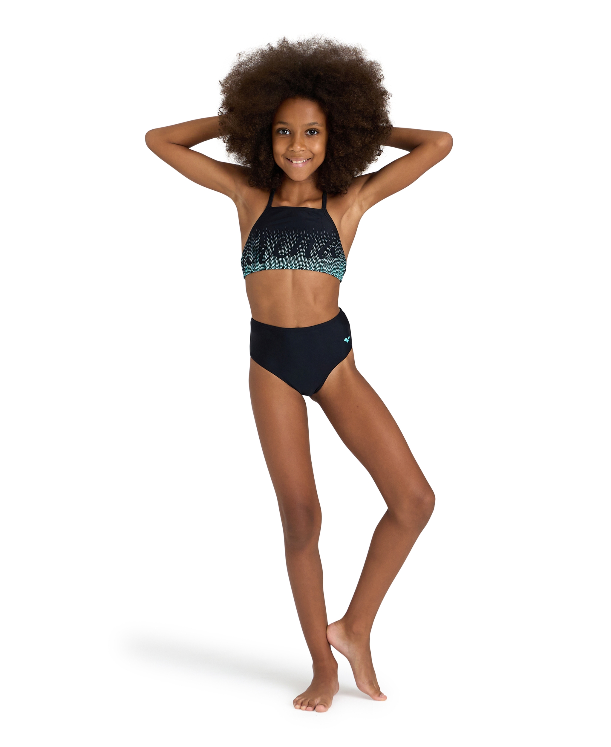 Der äußerst bequeme arena Graphic Crop Top Bikini für Mädchen ist ideal geeignet zum Schwimmen, sowie für Sport- und Freizeitaktivitäten am Strand und am Pool. Hergestellt aus schnelltrocknendem und weichem recycelten Stretchmaterial. Der Elastananteil sorgt für eine optimale Passform und macht es extrem leicht den Bikini An- und Auszuziehen. Ausgestattet mit überkreuzten Trägern für sicheren Halt. Mädchen lieben das sportliche Design. Jeder Bestandteil des STANDARD 100 von OEKO-TEX® wurde bei OEKO-TEX® zertifizierten Materialien getestet auf schädliche Substanzen und das Produkt ist unschädlich für die menschliche Gesundheit. Der Test wird durchgeführt durch unabhängige OEKO-TEX® Partner Institute basierend auf dem umfassenden Kriterienkatalog.