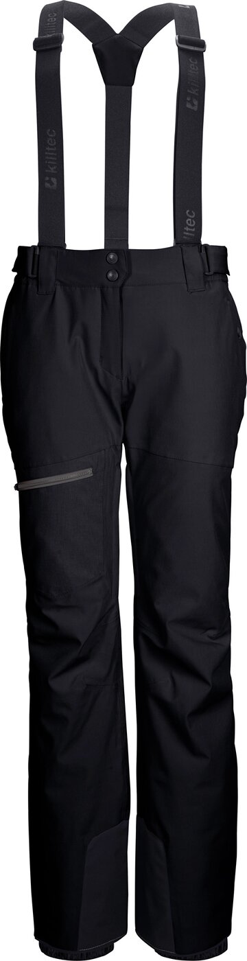 Die killtec Damen Skihose mit abnehmbaren Trägern überzeugt durch clevere Funktionen. Sie hat verschweißte Nähte und ist wasserdicht mit einer 10.000 mm Wassersäule. Ventilationsöffnungen und eine Wasserdampfdurchlässigkeit von 5.000 g/m²/24 h sorgen für ein angenehmes Körperklima. Das 4-Wege-Stretch Material verspricht viel Bewegungsfreiheit. Die Taillenweite lässt sich mithilfe von Klettverschlüssen verstellen. Schneefänge an den Hosenbeinen verhindern das Eindringen von Nässe, Zipper an den Beinabschlüssen erleichtern das An- und Ausziehen über die Skischuhe. Der Kantenschutz verhindert das Abnutzen an den kritischen Stellen. Die beiden Seitentaschen und die aufgesetzte Beintasche sind mit Zippern verschließbar. Der Hosenbund ist mit Schlaufen ausgestattet, sodass die Hose bei Bedarf mit einem Gürtel getragen werden kann. killtec liegt es besonders am Herzen, die Kollektionen nachhaltiger und zukunftsfähiger zu machen. Diese Skihose wurde daher teilweise aus recyceltem Material hergestellt. Material: Oberstoff: 100% Polyester, Futter: 100% Polyester, Wattierung: 100% Polyester (recycelt)