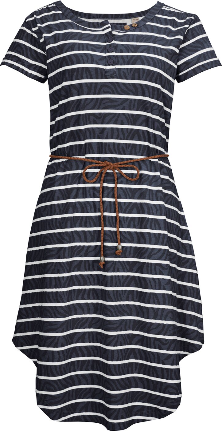 Das gestreifte Kleid von G.I.G.A. DX mit All-Over-Print und Bindegürtel ist der perfekte Begleiter durch den Sommer. Es besteht aus 100% Baumwolle mit Carbon Finish. Dies macht es besonders weich und strapazierfähig und sorgt für einen angenehmen Tragekomfort. Zierknöpfe am Ausschnitt und der asymmetrisch geschnittene Saum unterstreichen den lässigen Look. Material: Oberstoff: 100% Baumwolle