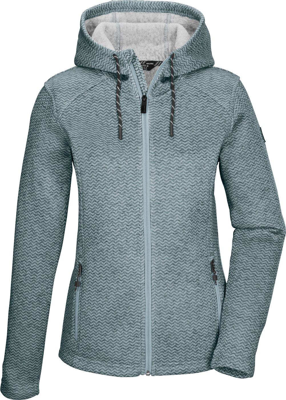 Die killtec Damen Strickfleecejacke in gemusterter Melange Optik eignet sich als dünne Übergangsjacke sowie als Midlayer unter der wetterfesten Jacke. Das Comfort-Stretch-Material verspricht einen angenehmen Tragekomfort. Die Kapuze lässt sich durch einen Kordelzug verstellen. Die beiden Seitentaschen sind durch Zipper verschließbar. Der Kinnschutz am Reißverschluss verhindert ein Einklemmen der Haut. Material: Oberstoff: 100% Polyester