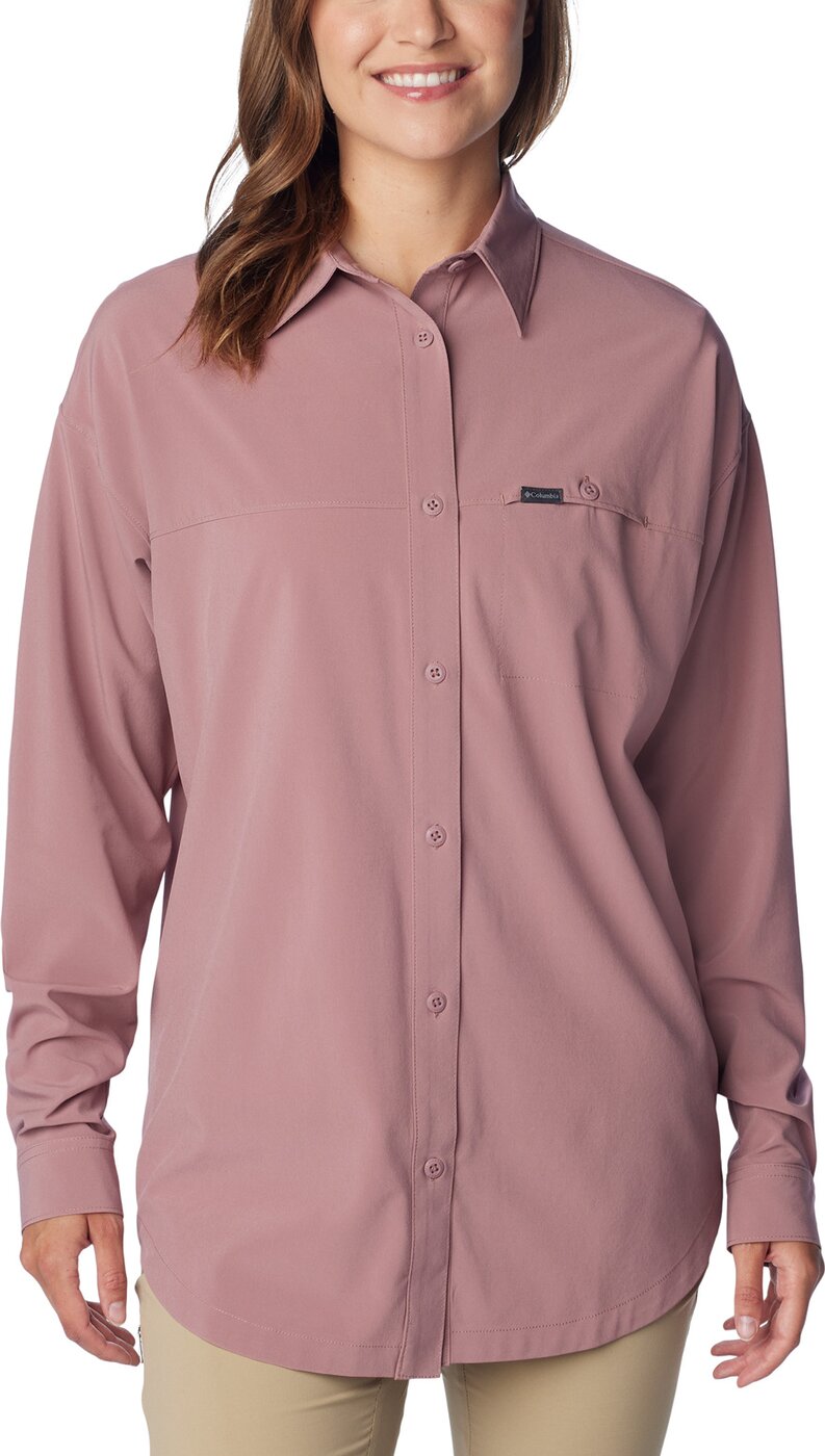 Egal, ob du in der Stadt oder in den Bergen unterwegs bist: dieses Columbia-Shirt für Frauen vereint Fashion und Funktion. Das wasser- und schmutzabweisende Finish schützt dich vor leichtem Nieselregen und Spritzern, damit eignet es sich ideal für das Layering bei unvorhersehbarem Wetter. Für all deine Essentials hast du praktische Taschen, darunter eine Innentasche ? zum Beispiel für deinen Personalausweis. Material: 86% Polyester; 14% Elasthan